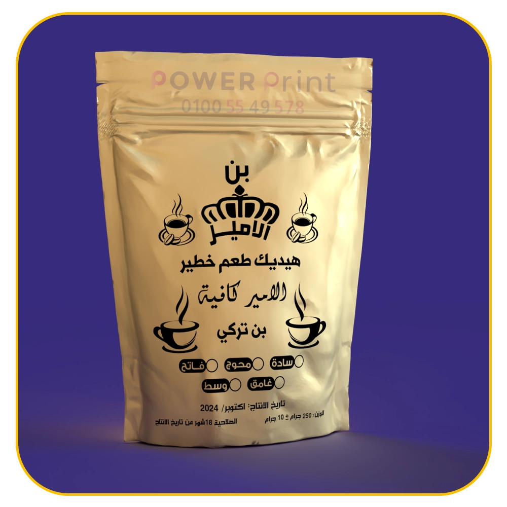 الكيس الابيض اللامع الميتاليز ال٣طبقات لتعبئة القهوة والمكسرات والبهارات